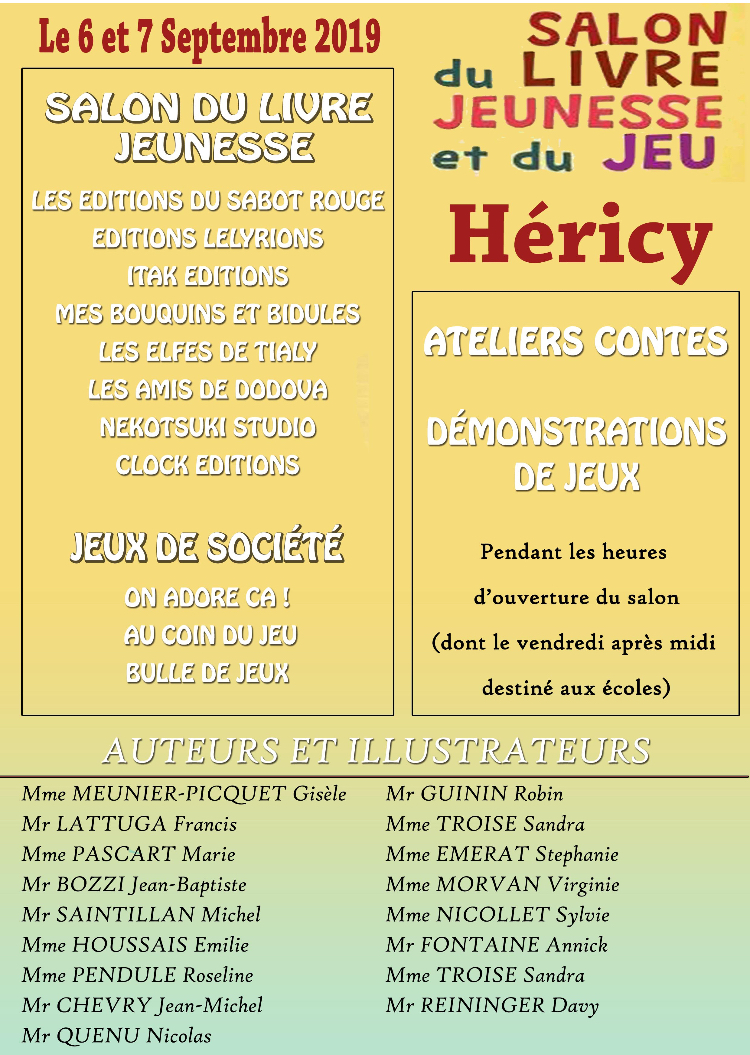 Retrouvez les Éditions du Sabot Rouge au Salon du livre et du jeu d'Héricy les 6 et 7 septembre